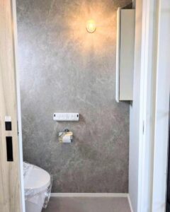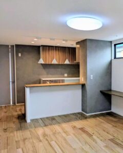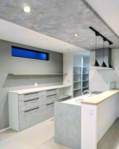 お施主様セレクト。穏やかなコンクリート柄がモダンな空間を演出します。